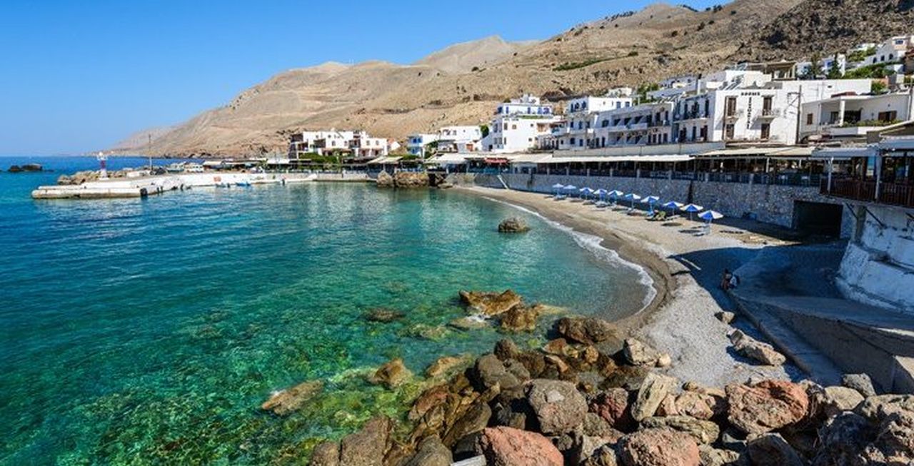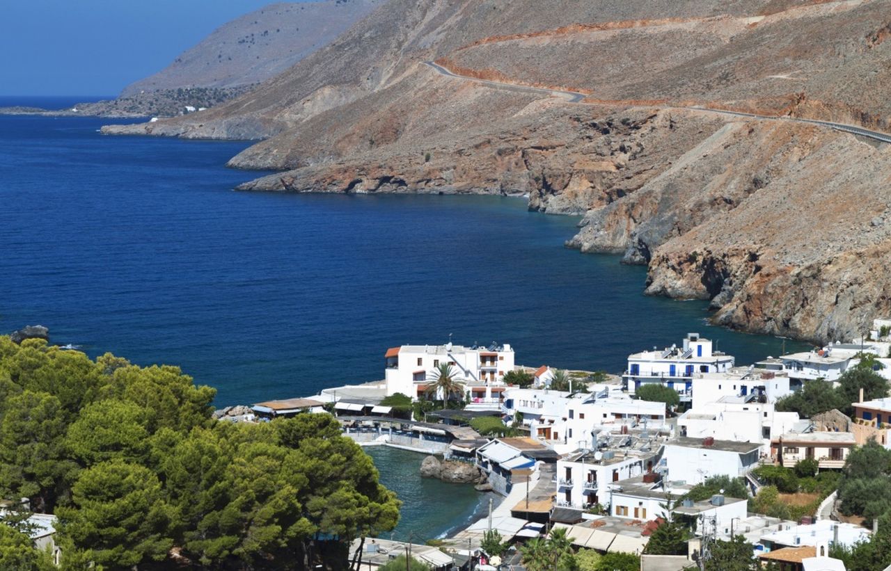 Imbros Gorge, close to Chora Sfakia, is the second most popular gorge on Crete after Samaria. During the high season hundreds of walkers visit daily to make the trek through the valley. The walk is not particularly strenuous and can be completed in 2-3 hours. The scenery is beautiful and the relative easiness of the hike makes it an ideal walk for families with children.Chora Sfakion (or Hora Sfakion) is the capital of the district of Sfakia, one of the wildest and most scenic regions of Crete. The village is located in beautiful surroundings and is an excellent starting point to explore the south coast of Crete.